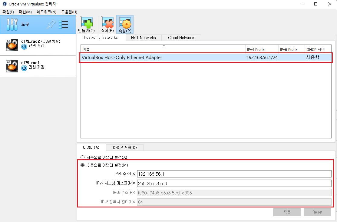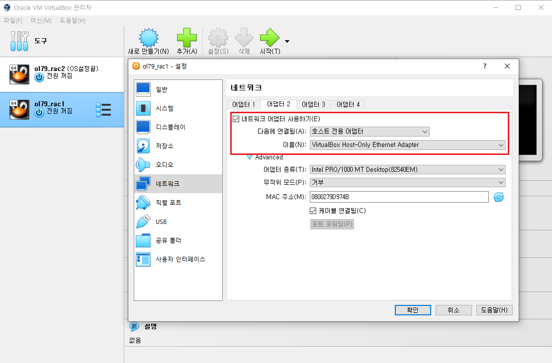 설치하려는 Guest OS가 사용 중인 PC(Host OS)와 서로 통신을 위한 호스트 전용 어댑터 설정