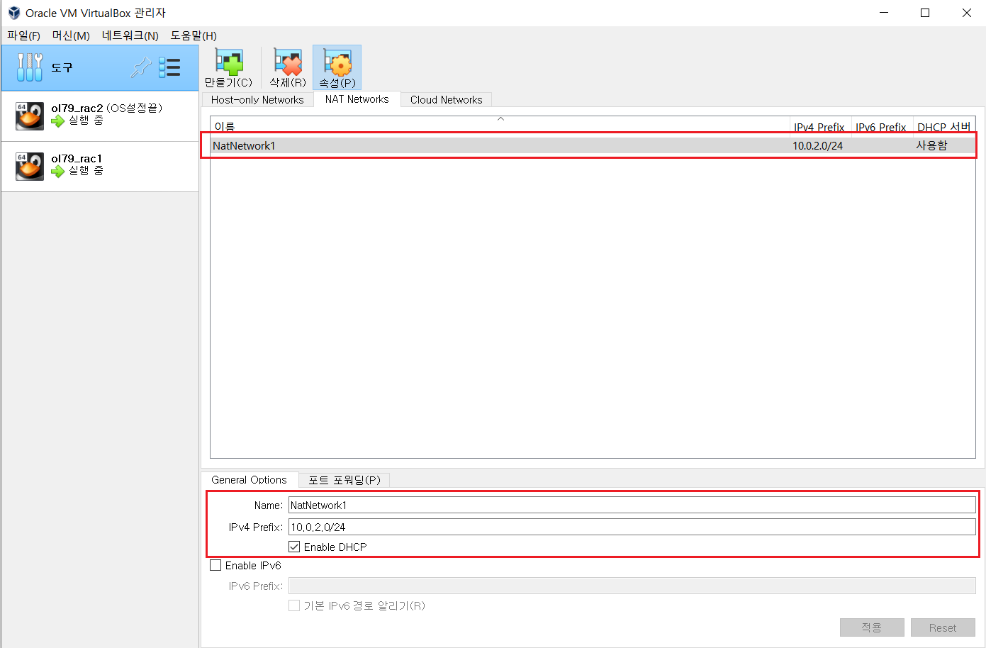 설치하려는 Guest OS가 외부와 통신하기 위한 NAT 네트워크 설정